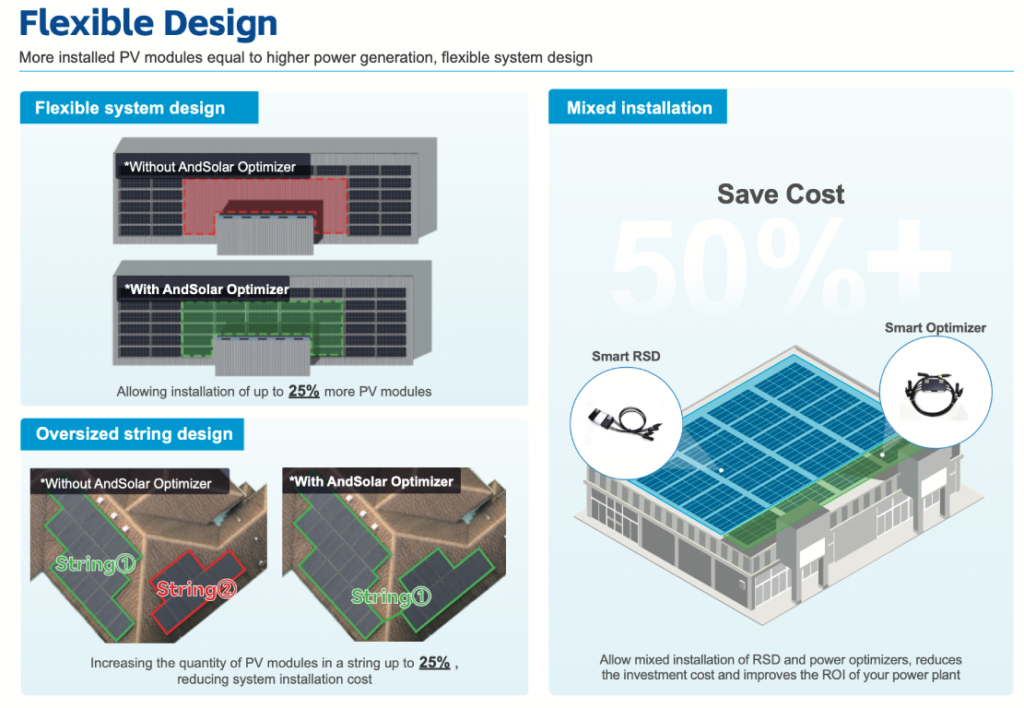 - Tiết kiệm chi phí: 1 MLPE / 2 module (nên áp dụng cho khu vực không có bóng râm)